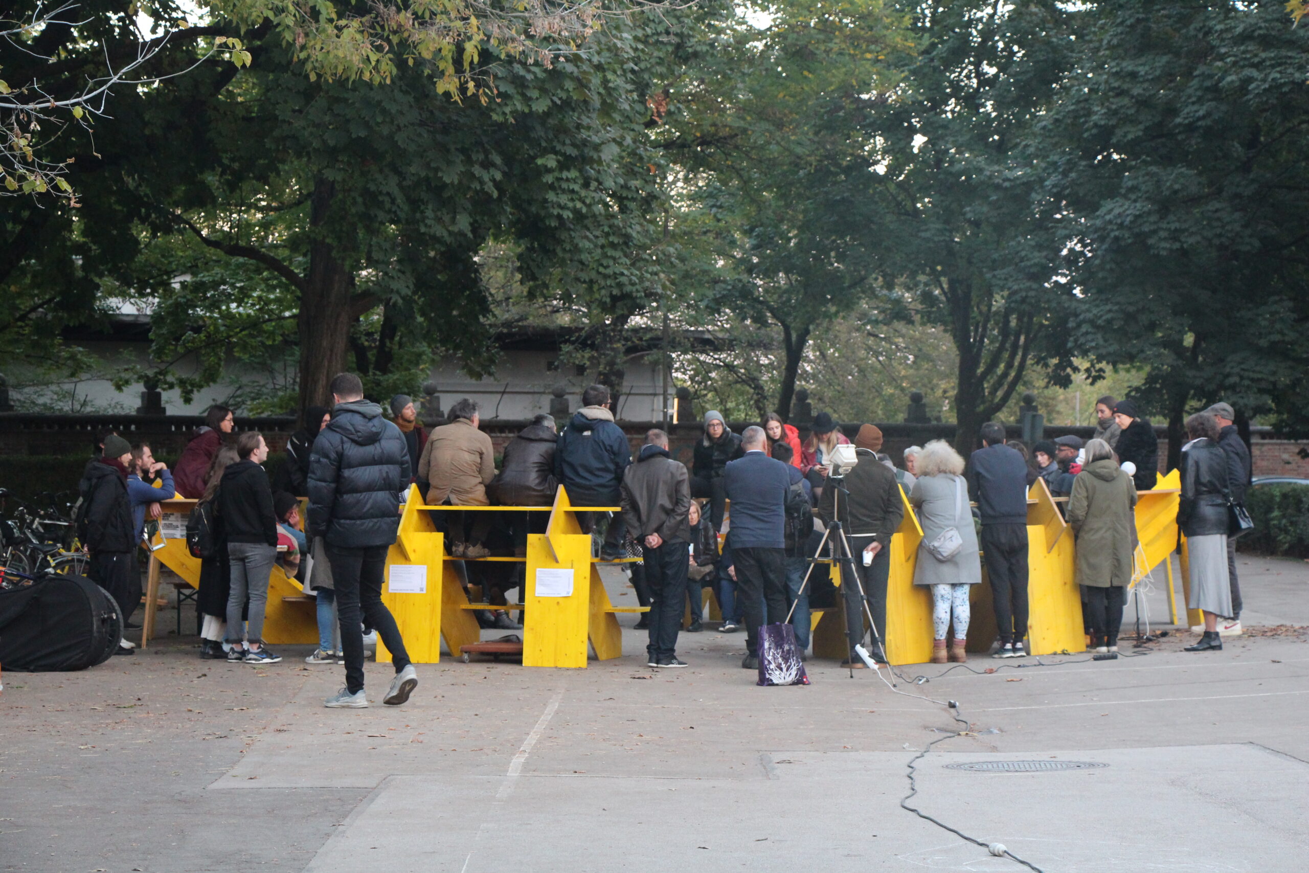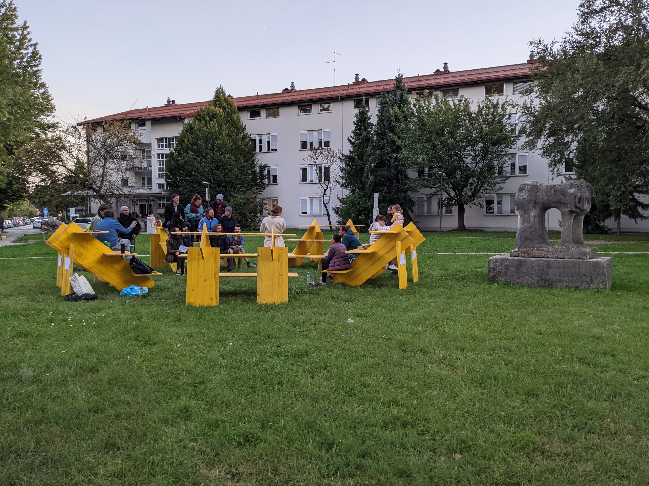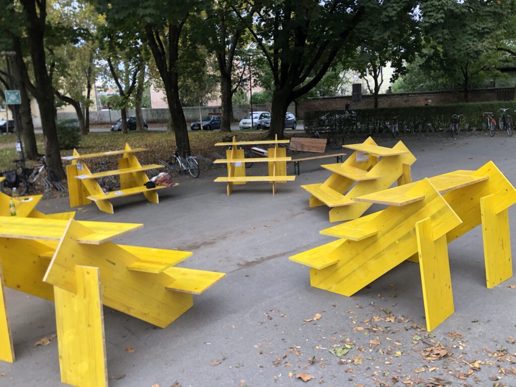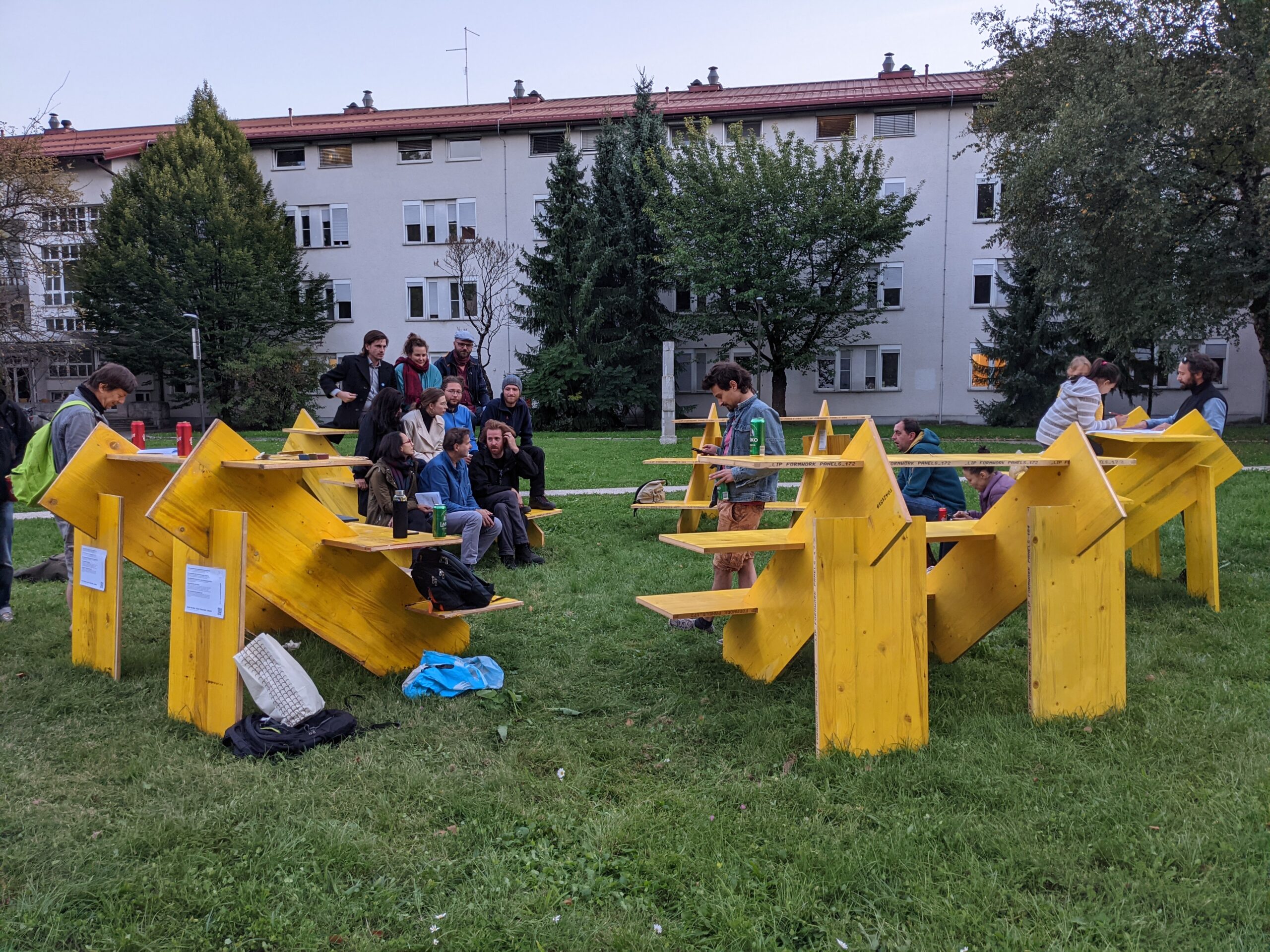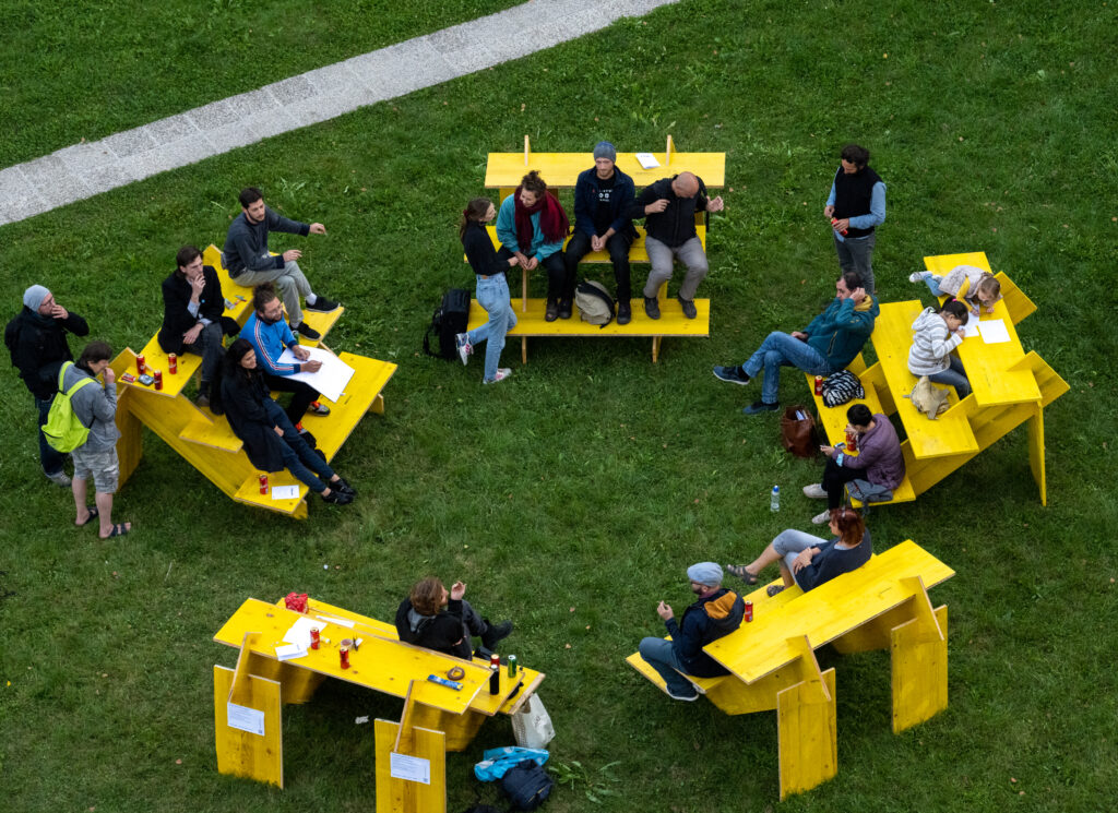 Public Parliaments are designed as portable, modular seating arrangements, adaptable for various events and gatherings.