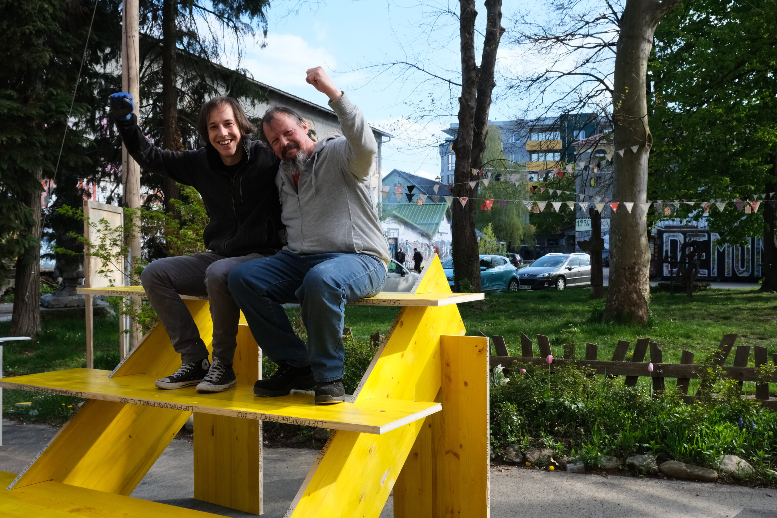 Public Parliaments are created by skilled craftsmen and manufacturers specializing in low-cost, adaptable furniture. They are designed to be quickly assembled, making them ideal for grassroots movements and community engagement.